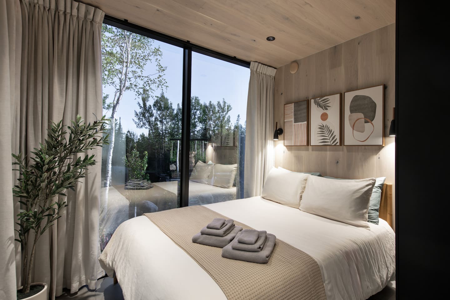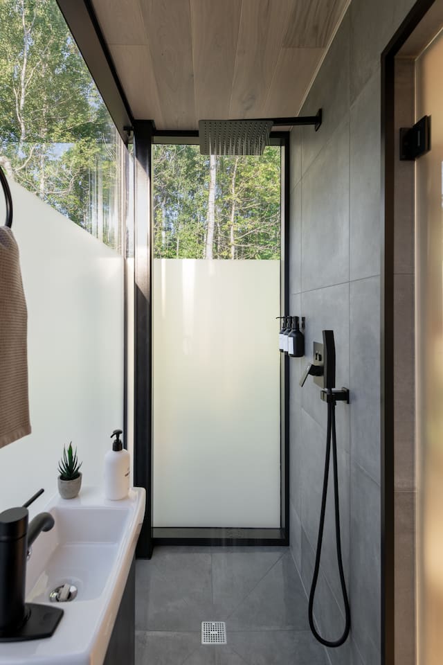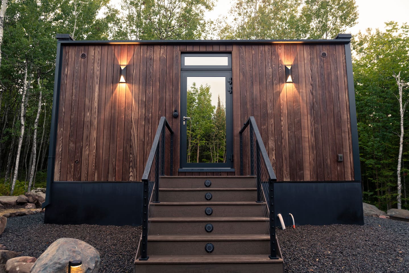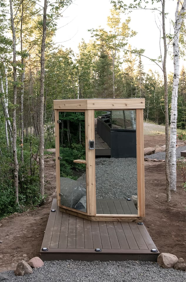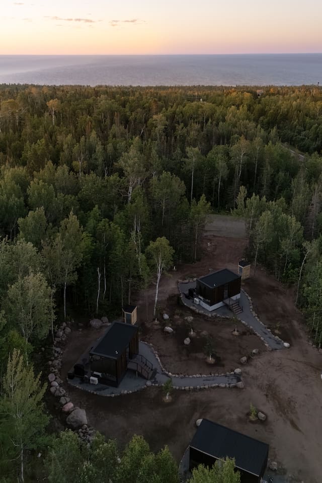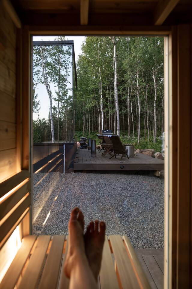Step into a unique architectural retreat with ceiling-to-floor windows and 360° panoramic views - designed for couples and nature lovers, perfect for your North Shore adventures. ✅Modern sauna ✅Private deck ✅Solo stove fire pit ✅2 mins to slopes, winery & golf ✅3 mins to Lake Superior ✅Endless hikes and adventure 🌲✨220 sq ft of cozy, modern comfort ⚠️Our cabin is pet-free, non-smoking, and for double occupancy ⚠️Please take a moment to review the ‘Other details to note’ section at the end