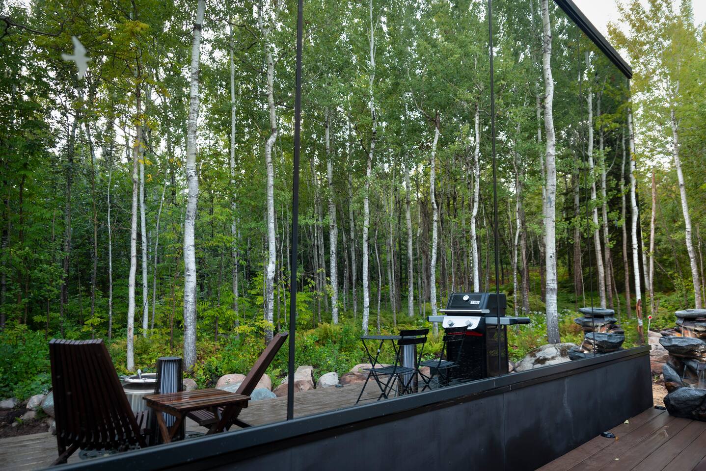Relax and recharge in our Mirror Cabin, just a minute from Lutsen Mountain Ski Area. Come for a cozy getaway with easy access to the state parks, golf, ski and winery. Designed to let the outside in, floor-to-ceiling windows blur the boundary between shelter and wilderness. Wake slowly in our comfortable bed with trees swaying outside your window. Step into a spa-inspired bathroom. End your day with a rejuvenating session in your private sauna. Your adventure includes: ✔️ Wet/dry mirror sauna ✔️ Solo Stove fire pit ✔️ Gas BBQ ✔️ Stocked kitchen ✔️ Nespresso Coffee - Starbucks pods ✔️ Fast WiFi ✔️ Google TV - Projector, Free Netflix included ✔️ Indoor/outdoor dining areas ✔️ Wall-mounted air conditioner ✔️ Heater floor ✔️ Easy checkout ✨ BEDROOM AREA✨ Lie in the queen bed and gaze out at the trees through the glass window. ✔️ 100% Cotton bedding ✔️ Room darkening shades ✔️ Blankets ✔️ Under-bed storage and luggage rack ✨ KITCHEN ✨ The kitchen is stocked with high-quality cookware and has all the modern comforts and appliances. You’ll have everything you need to cook a hearty meal. ✔️ Induction Cooktop ✔️ Microwave ✔️ Fridge/freezer ✔️ Nespresso Coffee - Starbucks pods ✔️ Black and herbal tea ✔️ Creamers, sugar, sweetener ✔️ Toaster ✔️ Electric Kettle ✔️ Pots, pans, cookware, utensils ✔️ Olive oil spray, salt, pepper ✨ LIVING AND DINING AREA✨ Sip a hot beverage, play a board game, and retreat from the outside world in the warm and cozy living room. ✔️Google TV Smart Projector. Free Netflix. ✔️ Sonos Bluetooth speaker ✔️ Dining table with two comfortable chairs and doubles as a comfy spot for games, puzzles, or working remotely ✔️ Air conditioner and heater floor ✨ BATHROOM ✨ Compact yet indulgent, the bathroom features Turkish cotton bath linens, robes, and paraben free, vegan friendly soaps. ✔️ Rainfall shower ✔️ Flush toilet ✔️ Organic Turkish cotton robes ✔️ Turkish cotton bath linens. ✔️ Public Goods (an earth-forward, sustainable brand) shampoo, conditioner, body wash, lotion and hand soap *Note: We’re on septic, so please only flush toilet paper (and human waste, obvi). ✨ BACKYARD & DECK ✨ Heal your body inside our mirrored sauna, or just stargaze from the private deck. ✔️ Mirrored sauna with panoramic forest views ✔️ Gas BBQ and grilling utensils ✔️ Dining table and two chairs ✔️ Two modern Adirondack chairs ✔️ Solo stove firepit ✔️ Free firewood, and kindling *Note that there will not be firewood provided during Cook County burn bans. 👉 Follow us at @lutsen.eclectic ✨ NEARBY ATTRACTIONS ‘N’ THINGS ✨ 🎿1-minute drive to Lutsen Mountain Ski area 🍷1-minute drive to North Shore Winery 🍕1-minute drive to Moguls Grille & Taproom ⛳2-minute drive to Superior National Golf Course 🥬3-minute drive to Clearview General Store ☕3-minute drive to Fika Coffee 🏔️9-minute drive to Oberg Mountain Trail Head 🍔13-minute drive to Bluefin Grille 🌲14-minute drive to Cascade River State Park 🌲15-minute drive to Temperance River State Park ⛵23-minute drive to Grand Marais
