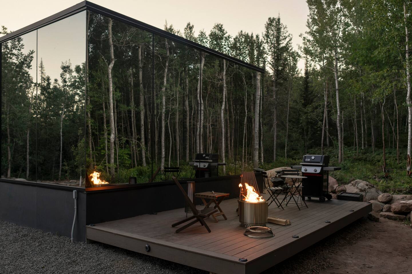 We have two mirror cabins in the property. Each mirror cabin offers a private retreat. For everyone’s comfort, please keep to your cabin area and respect the privacy of others.